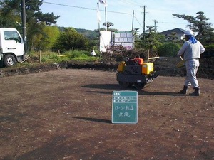レベルを確認しながら改良盤を整形しローラーで本転圧をします。